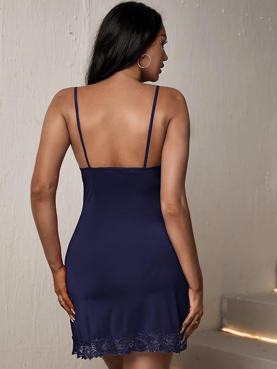 لانجري راقي بتصميم ناعم وأنثوي، بحمالات رفيعة وصدر مزين بدانتيل خفيف يدي لمسة أنيقة. الفتحة الجانبية مع الفيونكة الصغيرة بتضيف جاذبية وشكل مميز، والدانتيل في الحافة السفلية مكمل للإطلالة. خامته ناعمة ومريحة على الجسم ومناسب للمناسبات الخاصة.