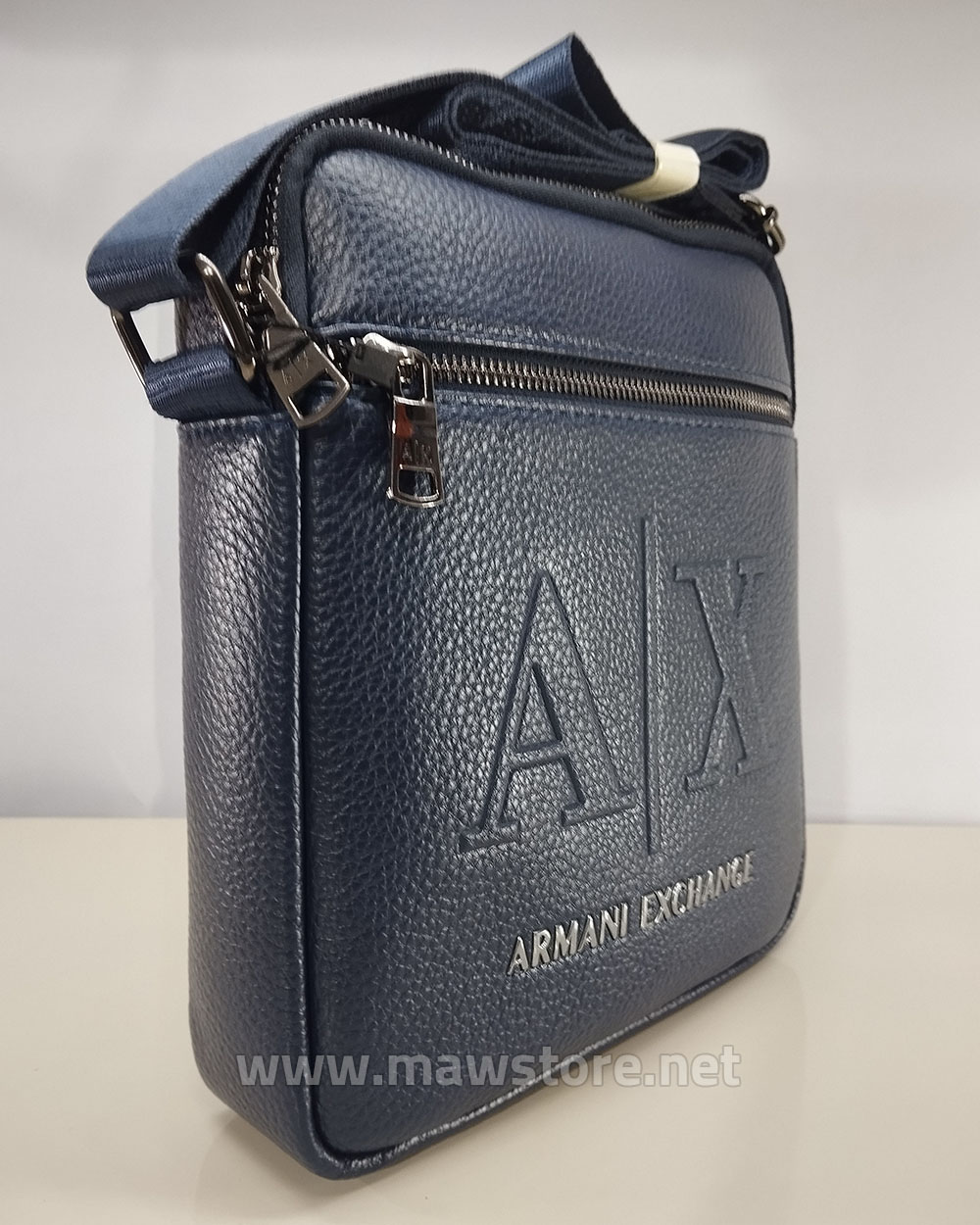 The Armani Exchange mirror leather crossbody bag blends fashionable elegance with everyday practicality, making it an ideal choice for men who value style and durability. Crafted from premium textured leather, this bag features a distinct embossed A|X logo that highlights the brand’s identity. With two convenient zippered compartments, organizing your essentials becomes easy, while the adjustable crossbody strap ensures comfort for daily use and travel. This versatile bag complements both formal and casual outfits and is popular among buyers seeking quality and sophistication. Its refined look and practical design make it a standout accessory in the luxury men’s bag market. Available on MAW Store