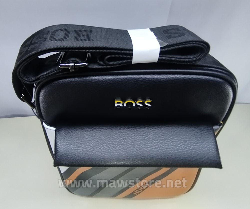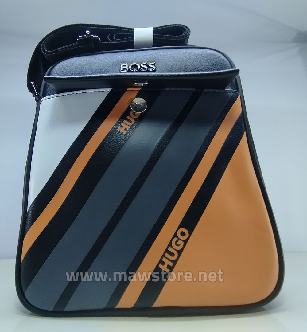 Hugo Boss crossbody bag seamlessly blends modern style and practicality to meet the needs of contemporary men. Crafted from high-quality leather with innovative touches and bold colored stripes on the front, the bag proudly features the HUGO and BOSS logos to enhance the brand’s luxury appeal. It is equipped with both a zipper and magnetic closure to guarantee security and ease of use while traveling or on the go. This bag suits both casual and formal outfits and is a standout choice for those seeking a balance of elegance and function. Available on MAW Store