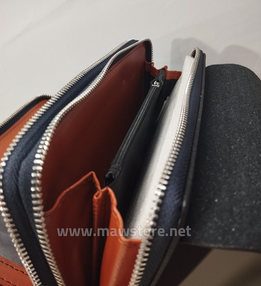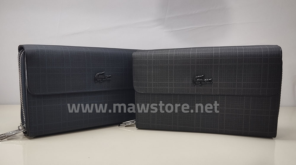 Men’s Lacoste hand bag (Mirror) with two zipper closures and external snap pocket, designed for maximum practicality and stylish organization. Features a structured layout with inner compartments for cards and documents, and secure zippers for valuables. Premium quality product for everyday use and travel, available in MAW Store.