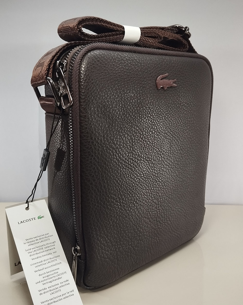Enjoy the highest level of quality with the Lacoste crossbody leather bag, designed to blend practicality and elegance in one. The spacious, organized interior and robust front zipper offer effortless use, while the adjustable strap guarantees comfort for all daily needs. Luxurious natural leather provides a refined long-lasting touch and reflects authentic design—making this your ideal choice for work or all occasions. Own this premium quality product for maximum confidence and style.