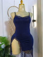 Add a touch of elegance and allure to your nightwear collection with this stunning tight-fit lingerie. Featuring a sleek, form-fitting design with a daring side slit, this piece is both seductive and comfortable. The delicate lace details at the hem and neckline enhance its feminine charm, while the adjustable spaghetti straps ensure a perfect fit. Available in two elegant colors – deep burgundy and classic black – this lingerie is ideal for special occasions or a romantic night in.