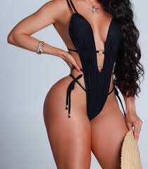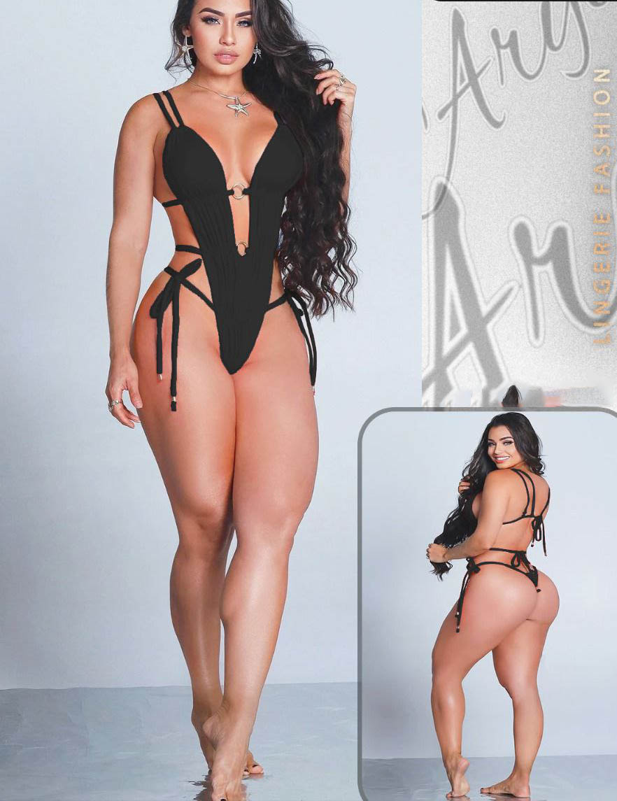 One-piece lingerie / bikini with a bold and elegant design that highlights feminine curves beautifully. Features an open-back style with adjustable side ties for a comfortable and flattering fit. Made from soft, stretchy fabric that hugs the body smoothly without discomfort. Perfect as beachwear or a standout lingerie piece for home.