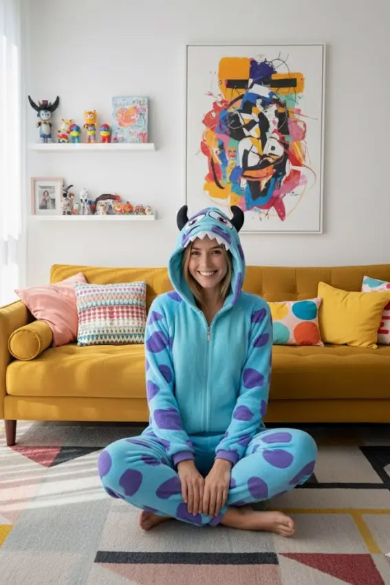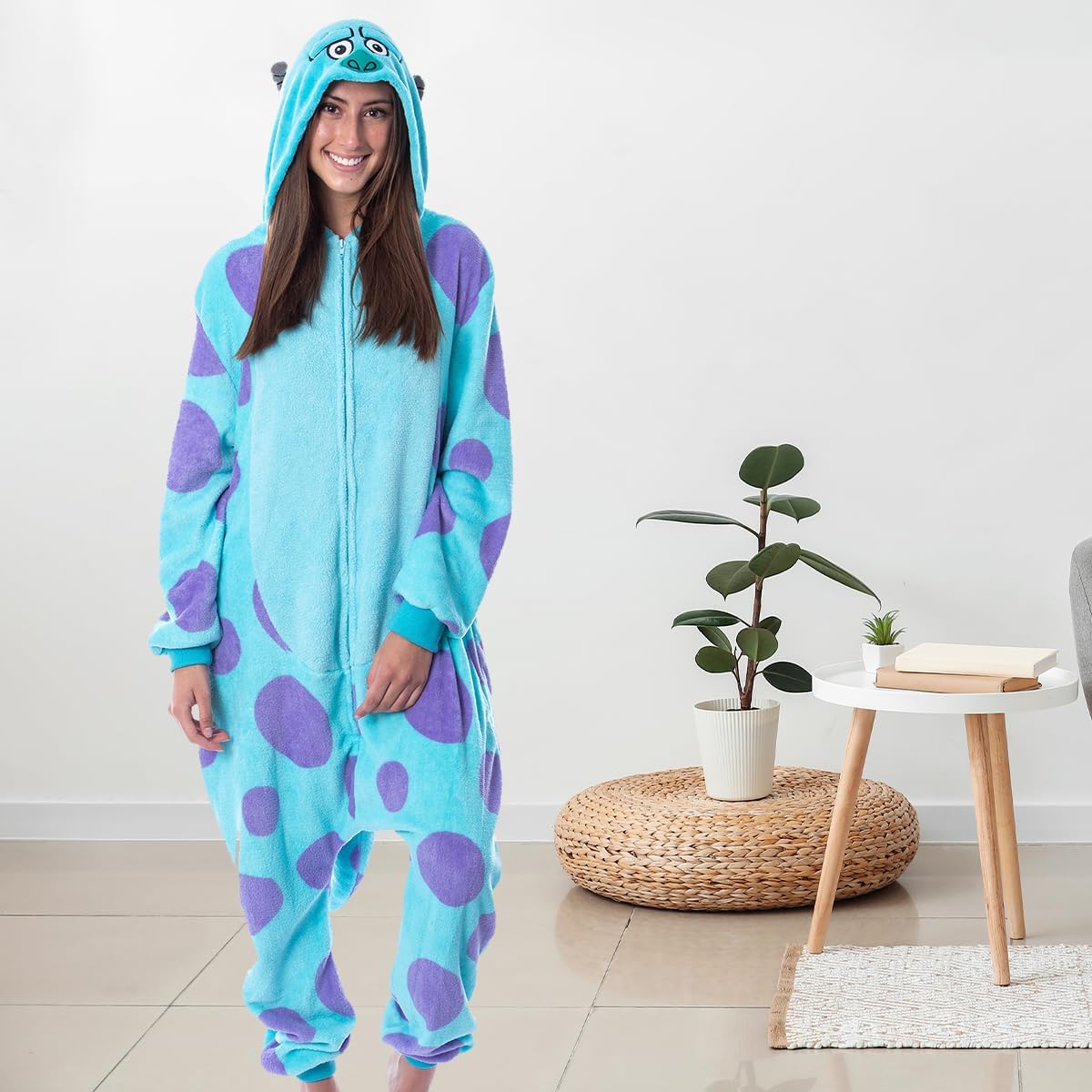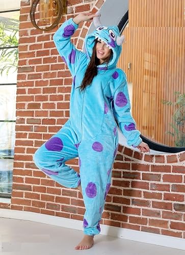Experience cozy elegance with this premium soft velvety jumpsuit inspired by the fun Sulley style. Made from high-quality plush velvet fabric, it feels extremely smooth on the skin and provides excellent warmth for cold days and relaxed nights at home. The front zipper allows easy wearing, and the detailed character hood adds a playful touch to your loungewear. Perfect for relaxing, sleeping, or taking cute photos — this jumpsuit offers the perfect mix of comfort and style. Available in multiple sizes for a comfortable fit.