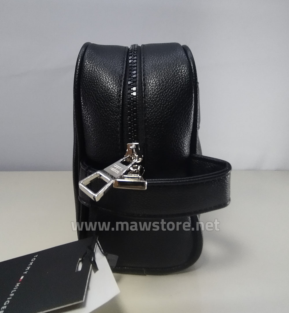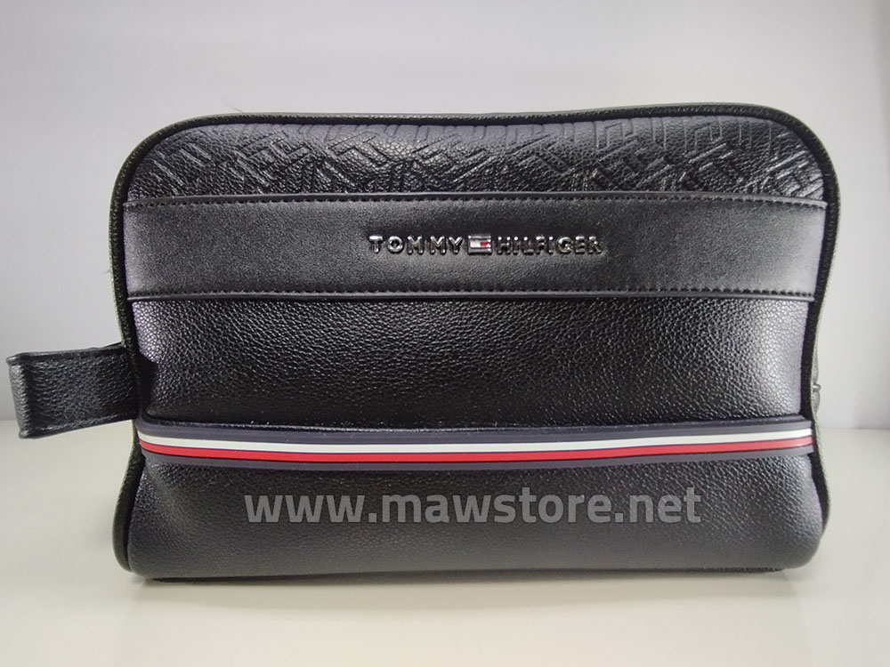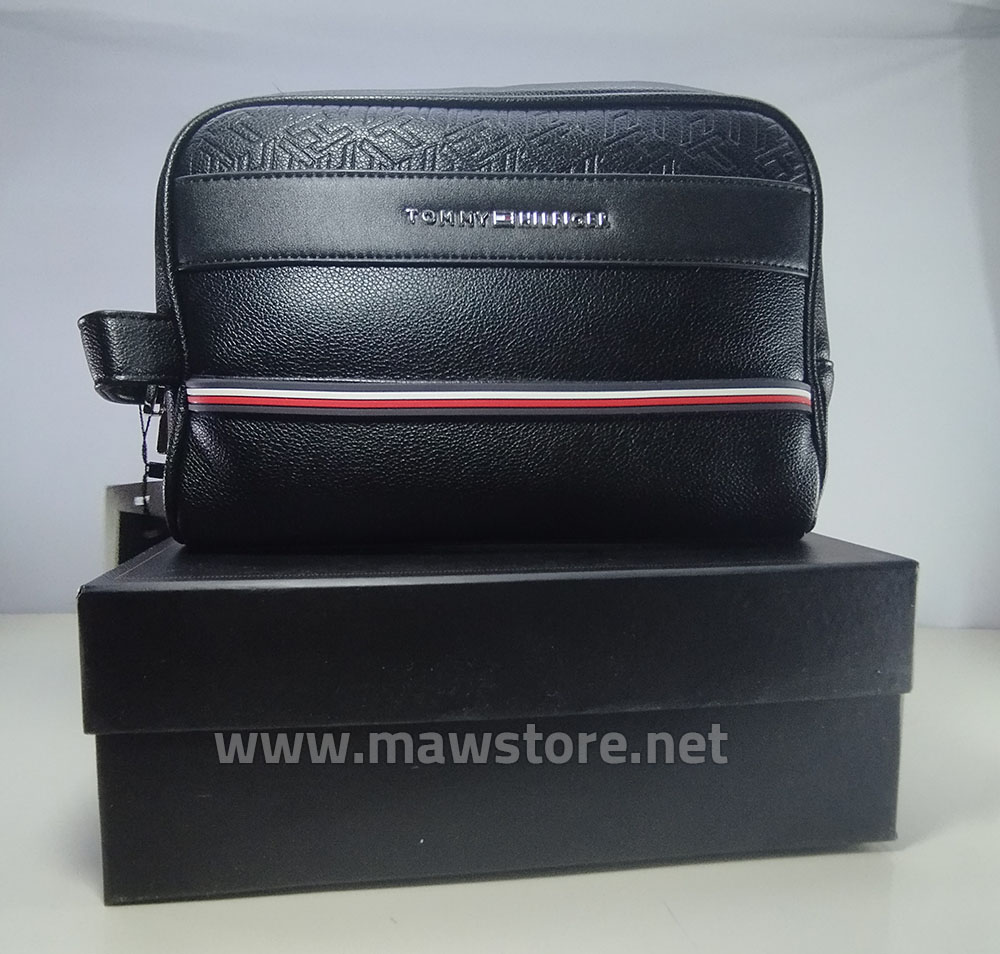 Men’s Tommy Hilfiger hand bag (Mirror) with box, featuring stylish pebbled leather, a bold Tommy signature stripe, and premium finish. Includes a large zippered main compartment, practical front zip pocket, and detachable adjustable shoulder and wrist straps for versatile carrying. Premium quality product, delivered in its branded box, available in MAW Store.