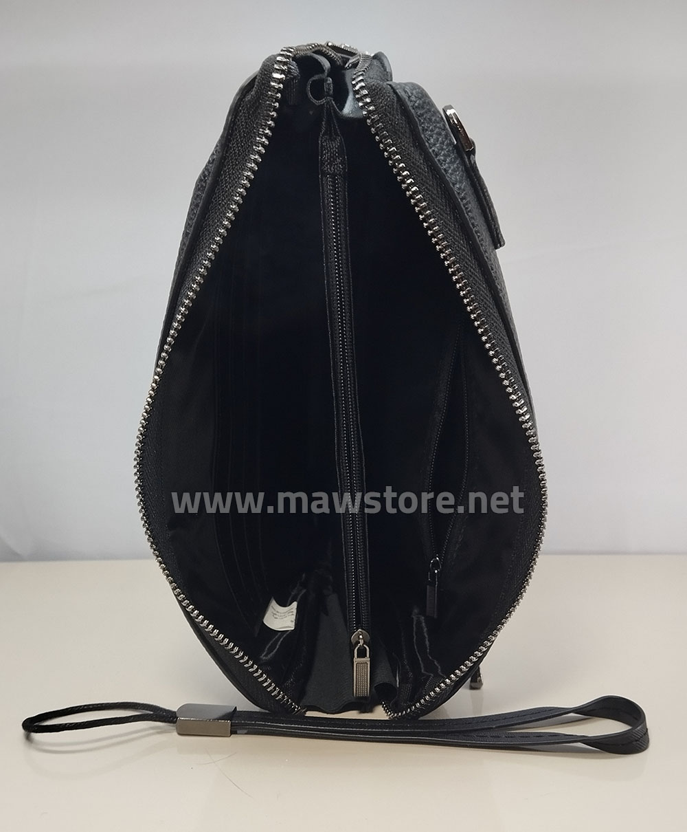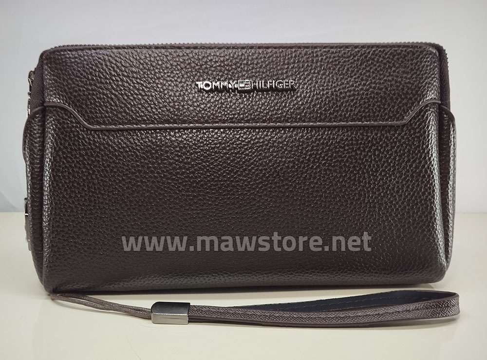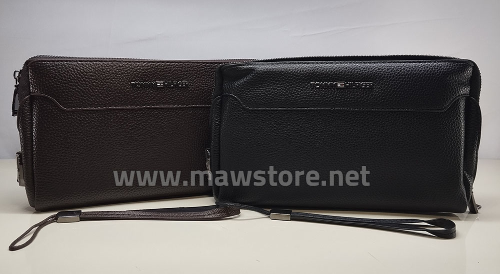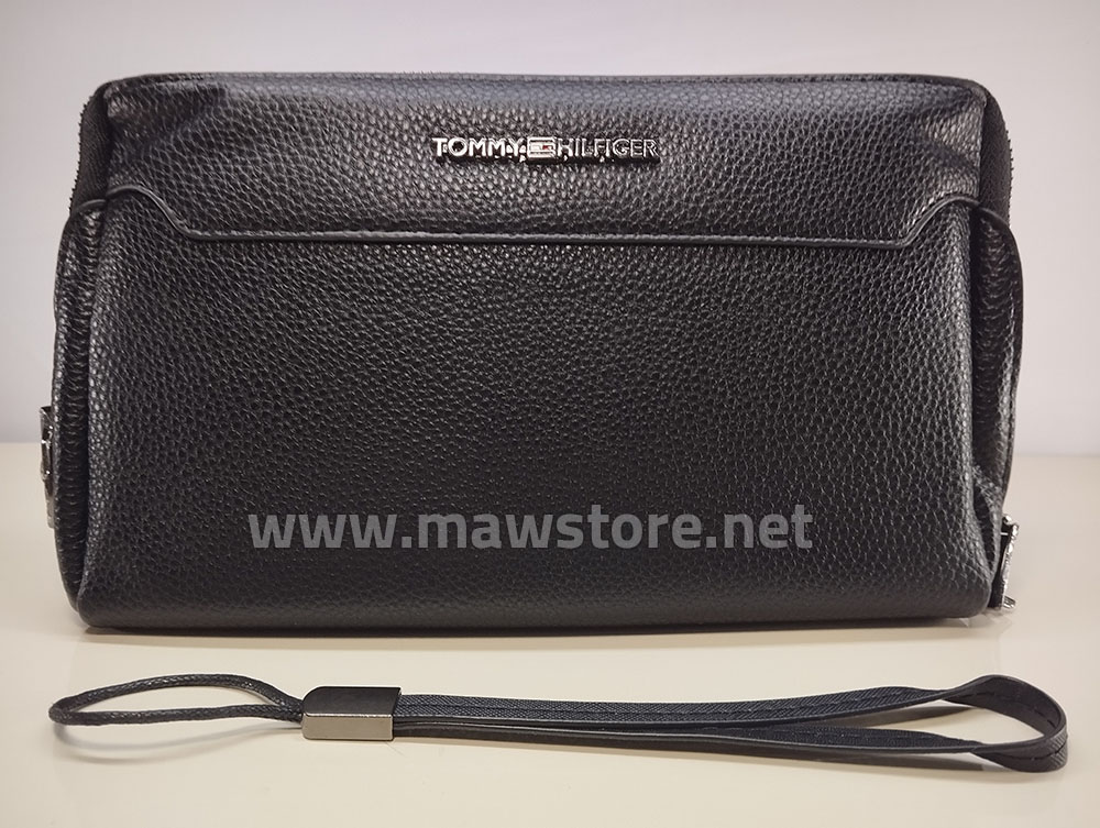 Men’s Tommy Hilfiger hand bag (Mirror) with a textured finish and functional zippered compartments for efficient organization. Features a practical front zip pocket and secure main compartment, complemented by a sturdy wrist strap for easy carrying. Structured design and reliable hardware make it ideal for daily use, travel, and keeping essentials safe. Premium quality product, available in MAW Store.